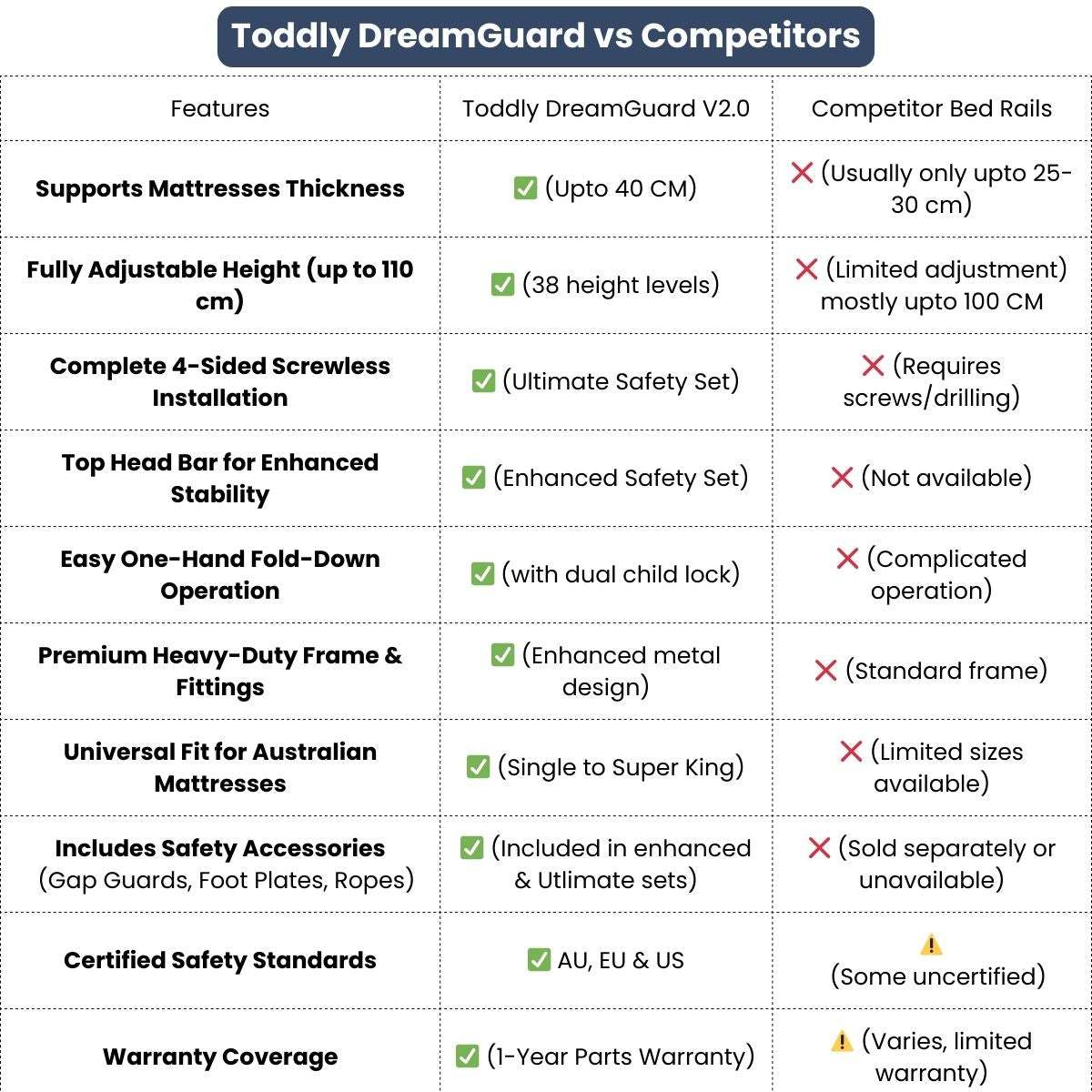 Toddly DreamGuard V2 Adjustable Baby Bed Rail Sets for Secure & Peaceful Nights