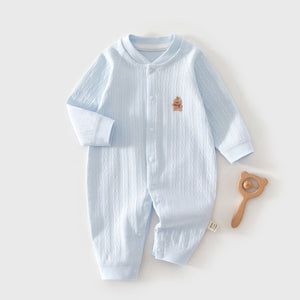 Every romper in this collection is made from premium baby-friendly fabrics chosen for softness, breathability, and flexibility. Whether you select a ribbed knit, smooth printed cotton, jacquard texture, or an embroidered motif, each piece ensures gentle comfort against newborn skin.