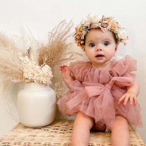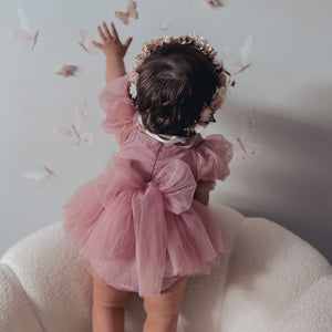 Turn special moments into magical memories with the Feather & Fawn Celeste Tulle Puff-Sleeve Romper Dress. This enchanting one-piece combines the elegance of a dress with the comfort of a romper, making it perfect for birthdays, cake smashes, photoshoots, weddings, and all your little one’s milestone celebrations.