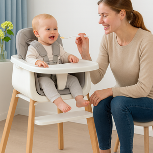 - Baby High Chair (6m+): Full setup with tray and 5-point harness.