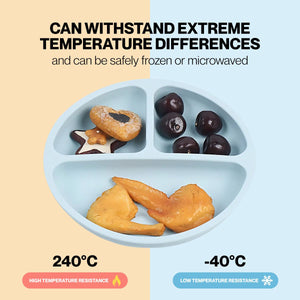 ✔️ Mess-Free Dining: Suction plate & suction bowl stick to highchair trays, preventing spills.